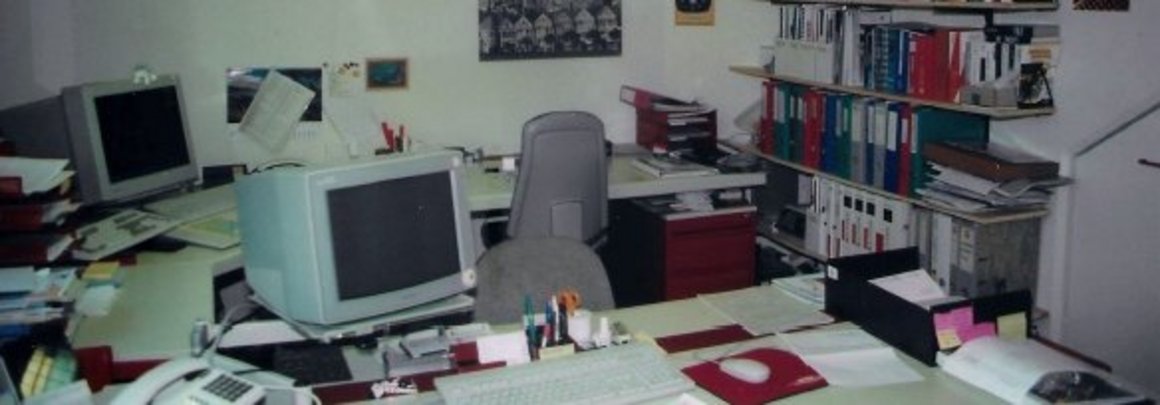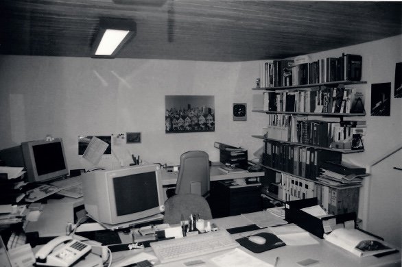 最初这个办公室就设置在组装设备的车库旁边,我们创始人Heiner Scherrer住宅楼的地下室里。没过多久它在接缝处破裂了,但在当时依然是先进技术,尽管在现在看来有些穿越。
