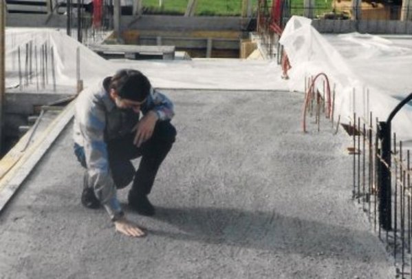 1994年我们搬家了。在照片中,您可以看到我们的创始人Heiner Scherrer在测试混凝土是否干燥,我们即将搬入第一栋公司大楼,拥有更多的空间,他感到兴奋又自豪。